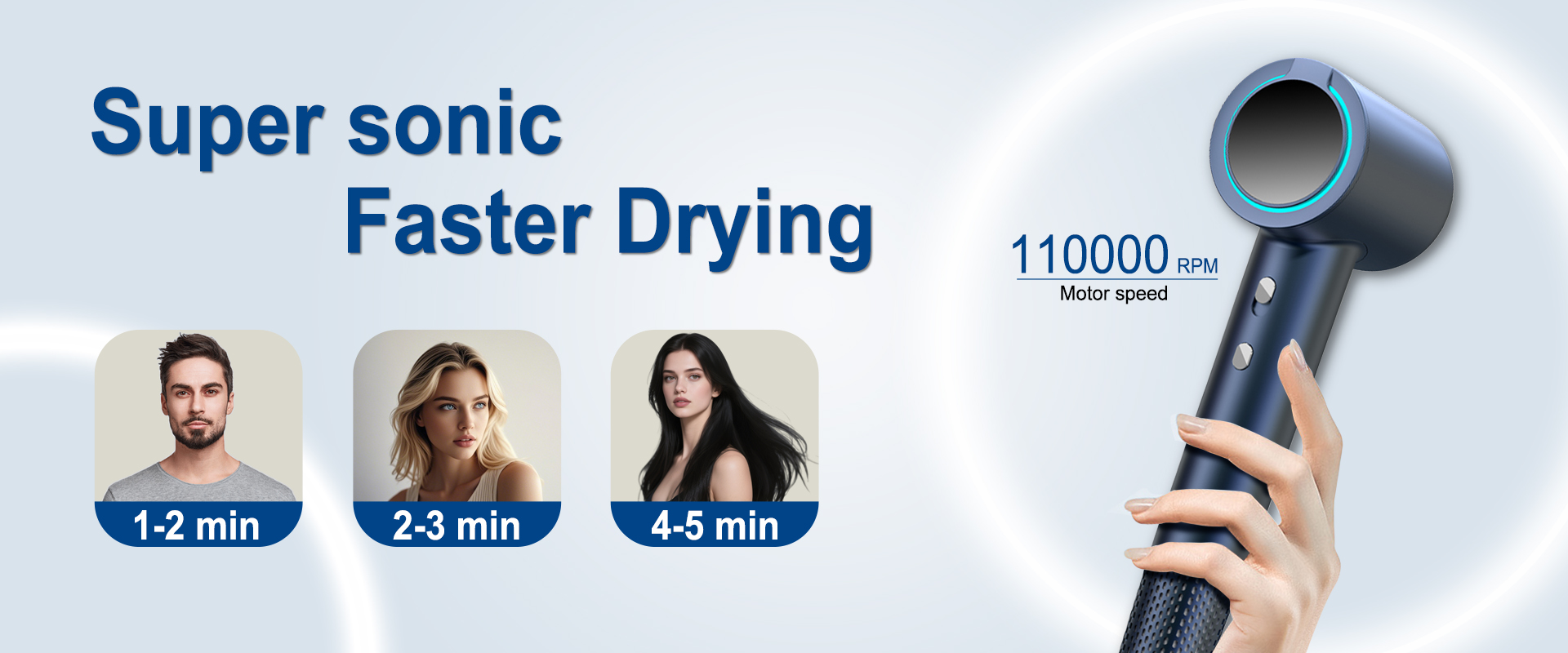 Our hair dryer is equipped with a 110,000 RPM brushless motor and 22m/s high-speed airflow to slash drying time drastically.